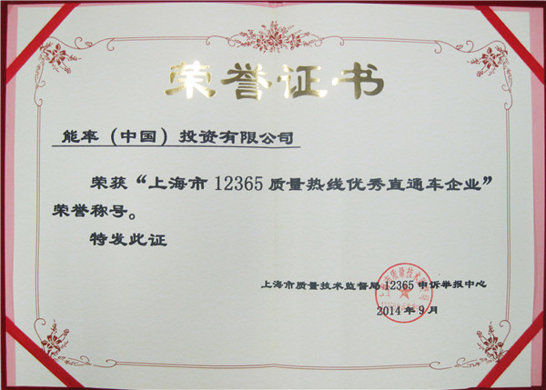 2014年上海市12365质量热线优秀直通车企业