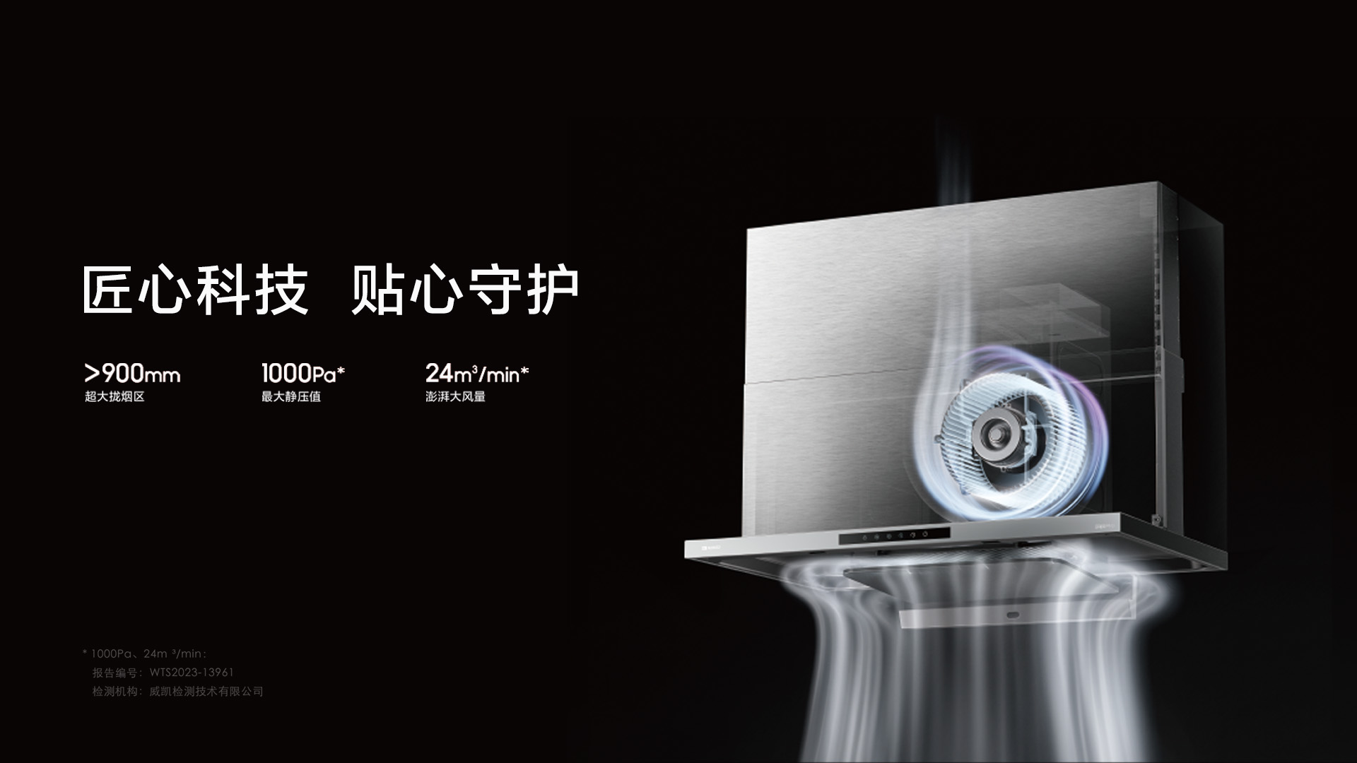 中式爆炒产生的油烟是健康隐患,油烟中的丙烯醛会直接刺激呼吸道黏膜,引发咳嗽、流泪等症状。能率日式油烟机以超过900mm超大拢烟区,配合四方环绕负压设计与强劲直流变频风机,爆炒模式下风量可达24m³/min*,形成油烟强引力区,牢牢“抓”住油烟,避免有害物质扩散,告别"炒个菜满屋油烟"的尴尬。