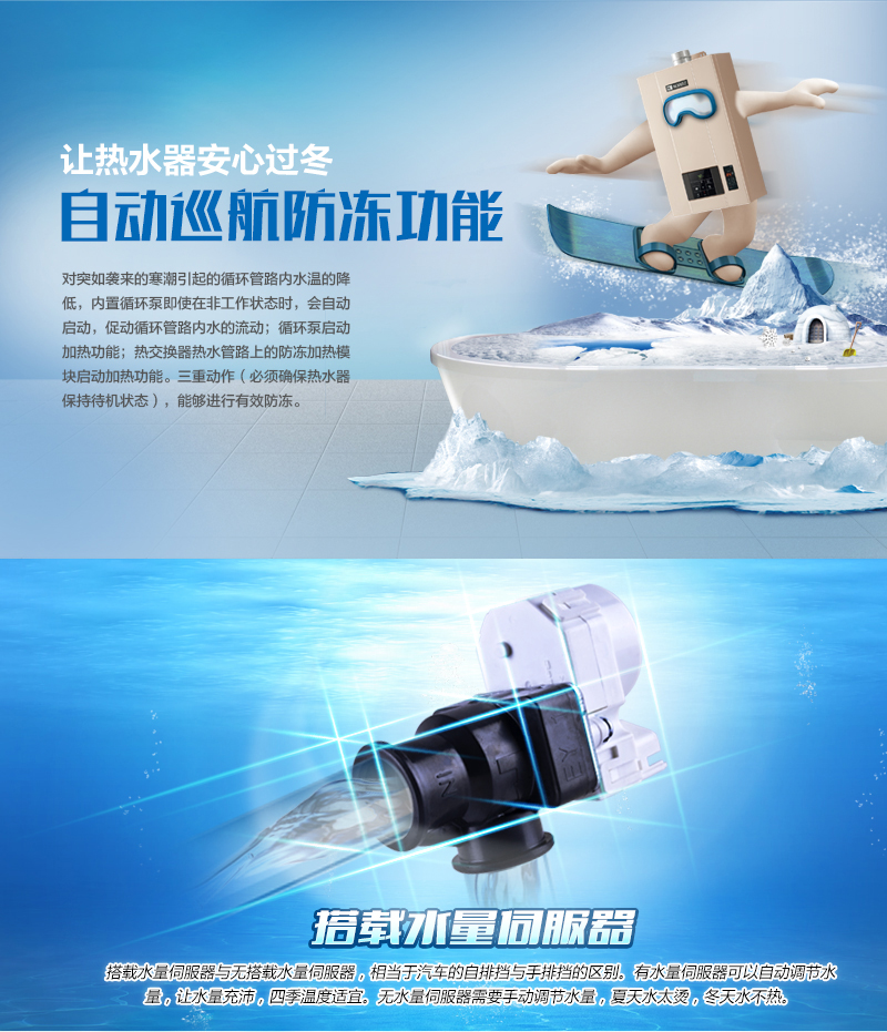 温度控制方式:电子式燃气比例控制方式+水量伺服器控制方式