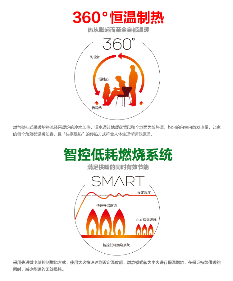 - 智控低耗燃烧系统,满足供暖的同时有效节能