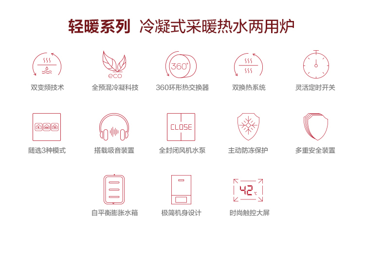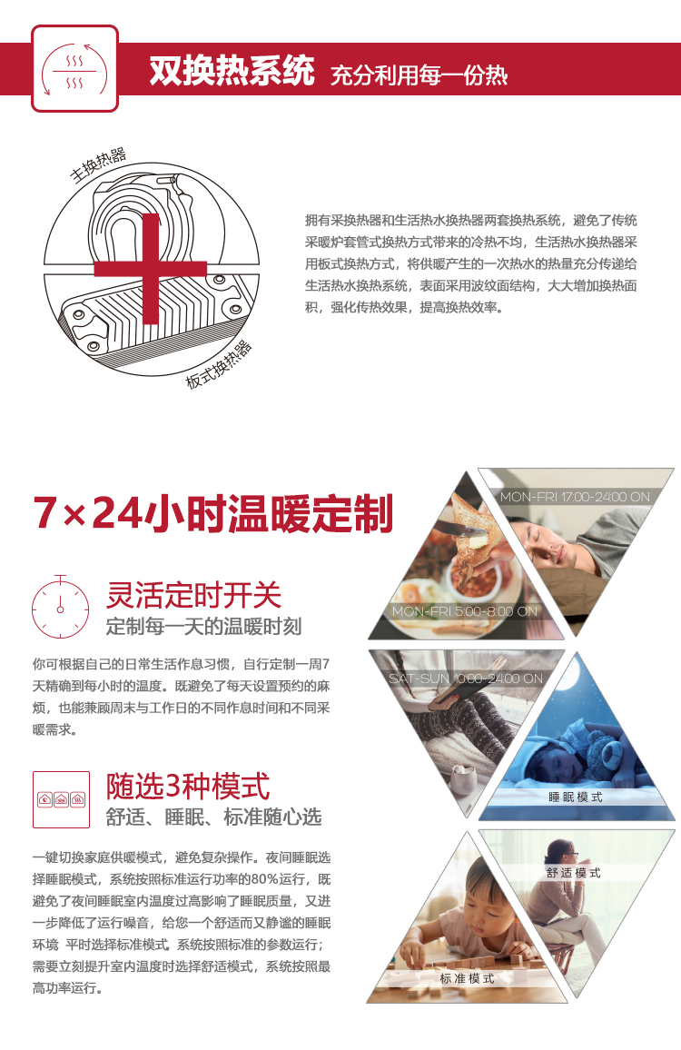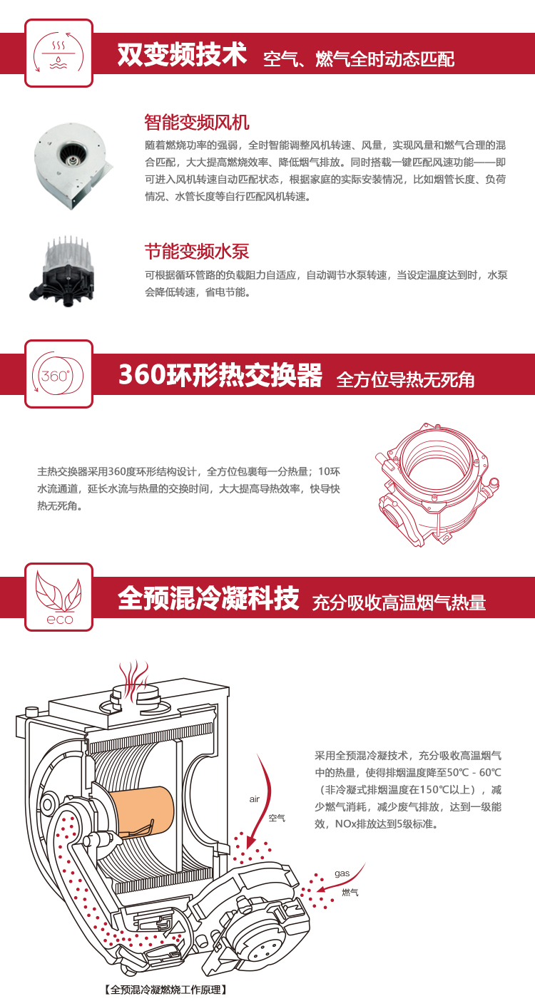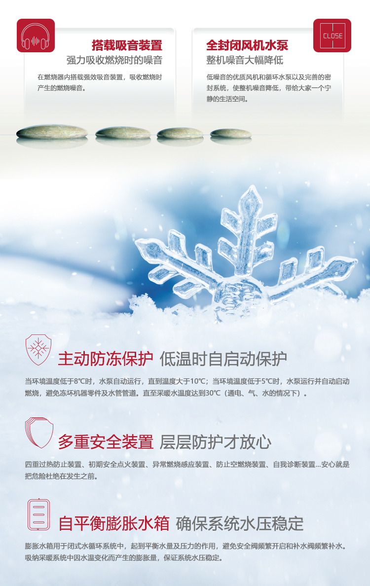 - 全封闭燃烧,搭载吸音装置;无极变频静音风机水泵