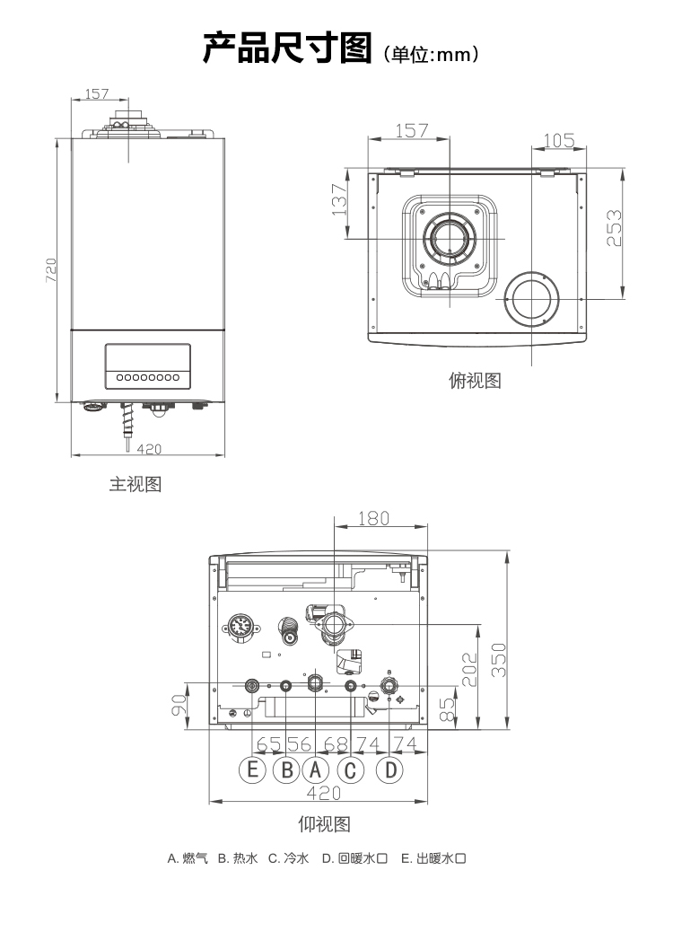 采暖(℃)最小额定热输出(50/30℃)(kW):5.8