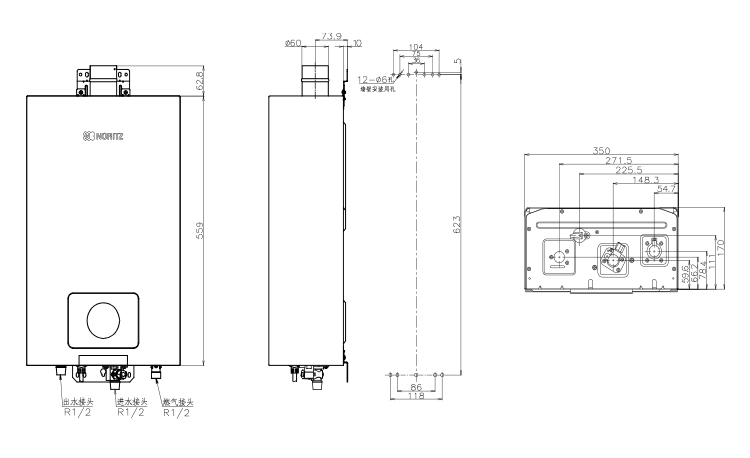 额定热负荷(kW)时产热水量〈Kg/min〉水温+25 ℃上升:16