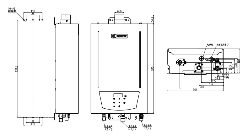热水热效率(%):额定热负荷(kW)≥ 89%,50%额定热负荷(kW)≥ 85%