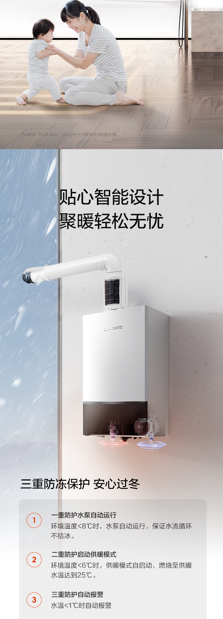 采暖(℃)额定最小热输出(80℃/60℃):5.0kW
