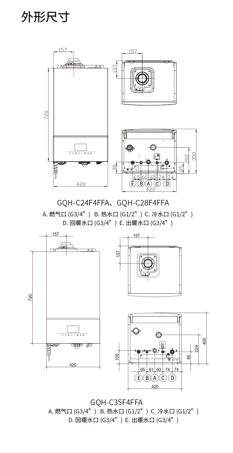 采暖(℃)额定最大热输出(80℃/60℃):24.0kW