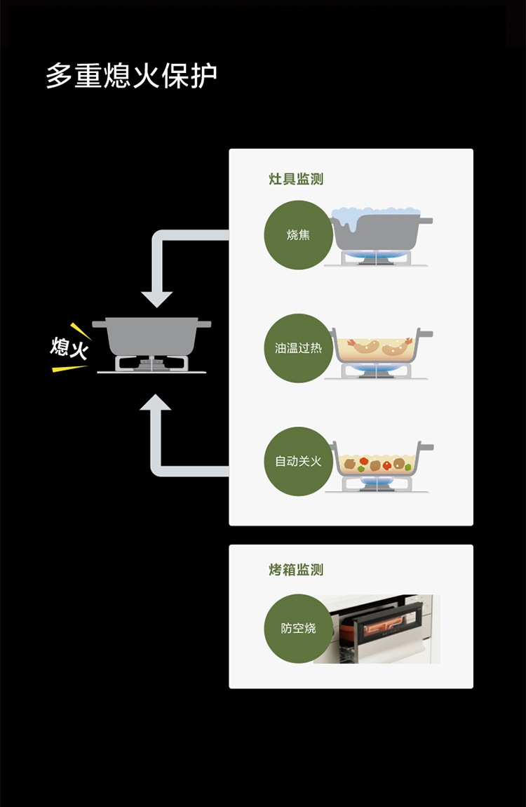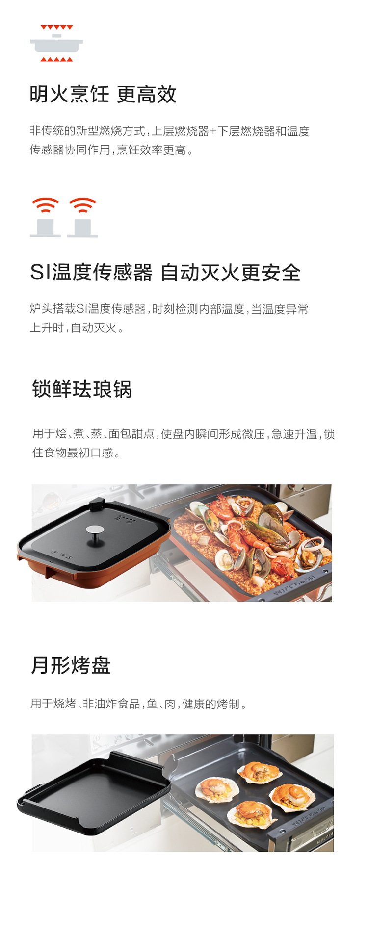 所有燃烧器炉头:安全自动熄火装置 / 童锁功能 / 烧焦自动熄火防护功能