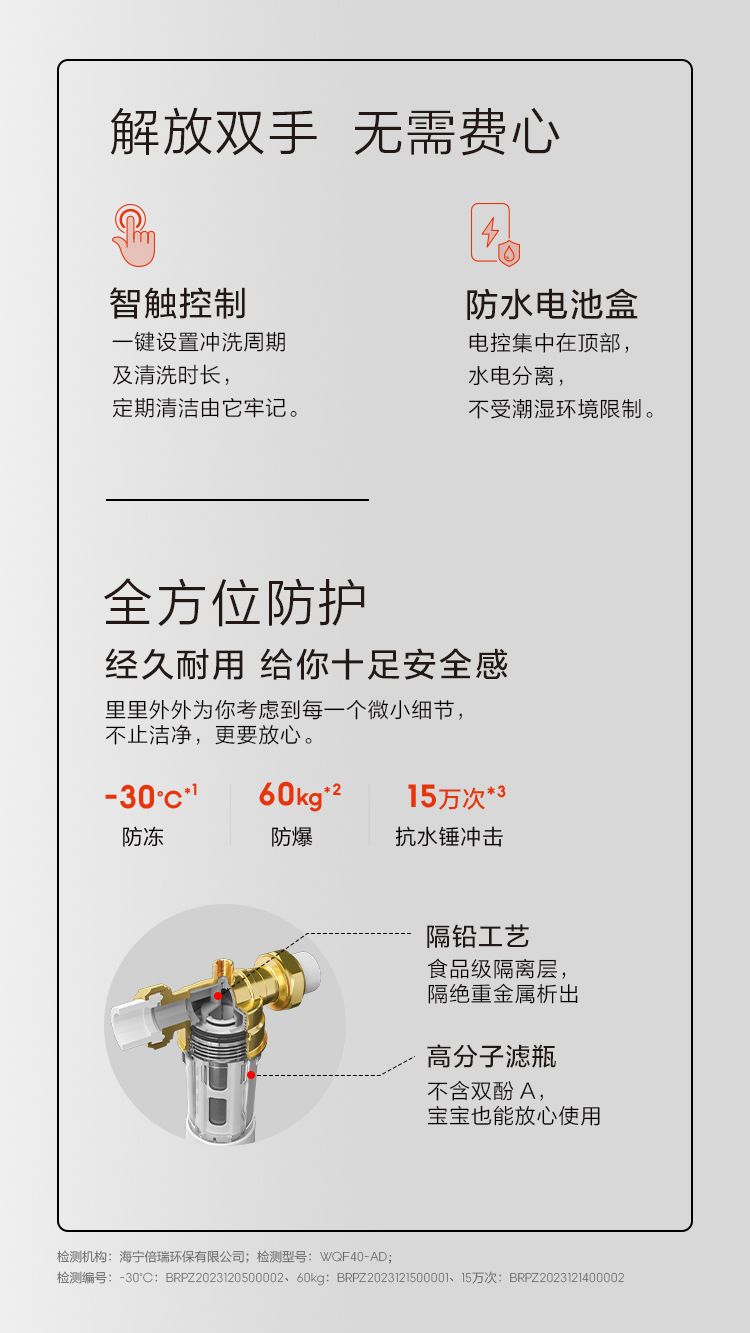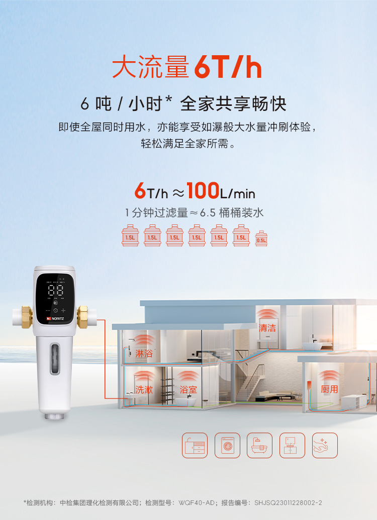 出水水质:符合《生活饮用水水质处理器卫生安全与功能评价规范-一般水质处理器》(2001)的要求。