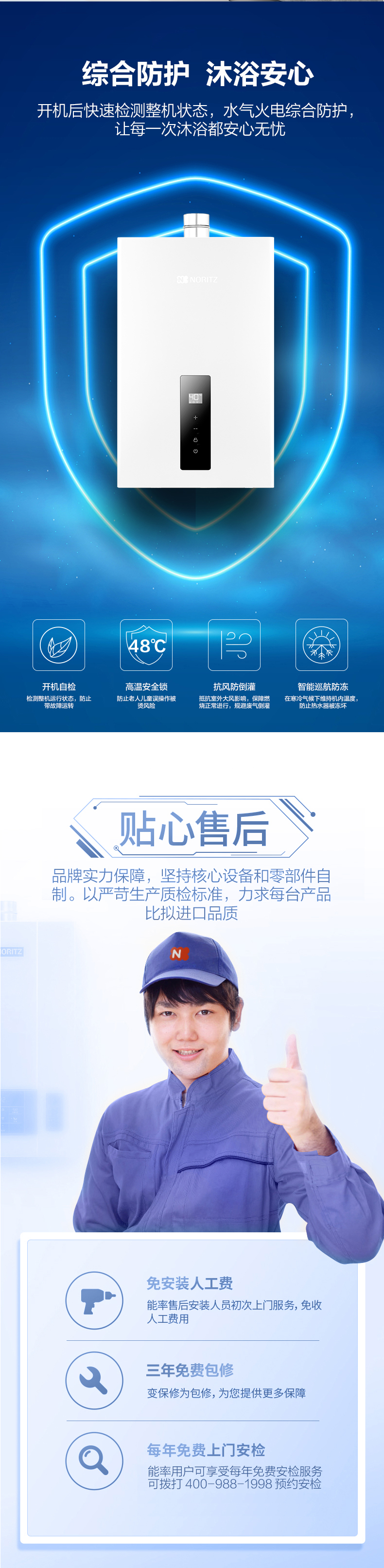 安全装置:*熄火保护、*过压保护、*可复式空烧保护、*水、气路过滤、*熔断式、过热保护、*LED数码故障显⽰、*断水保护、*防雷击保护、*双重燃、气电磁阀等等安全保护装置