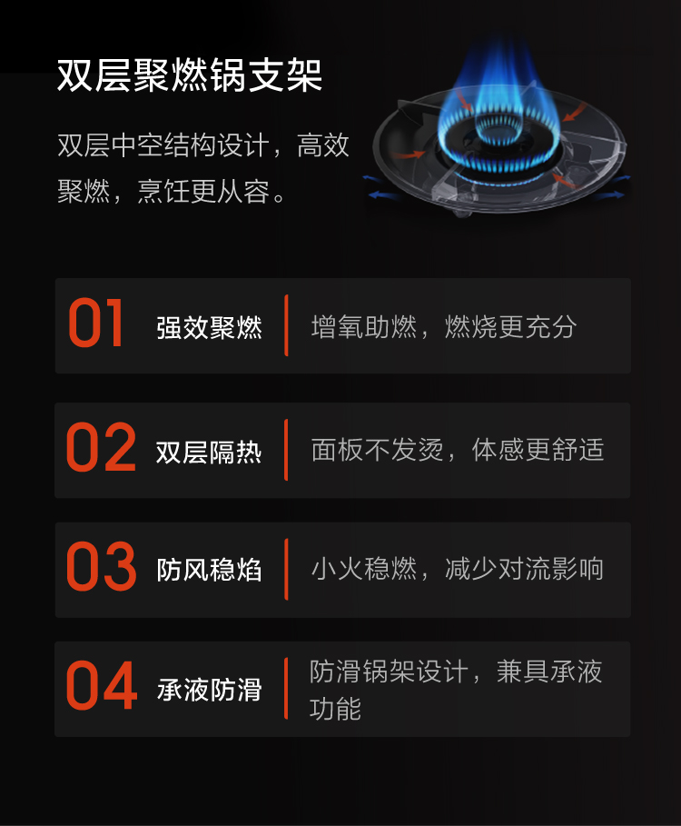 - 双层锅支架,防风稳焰更隔热