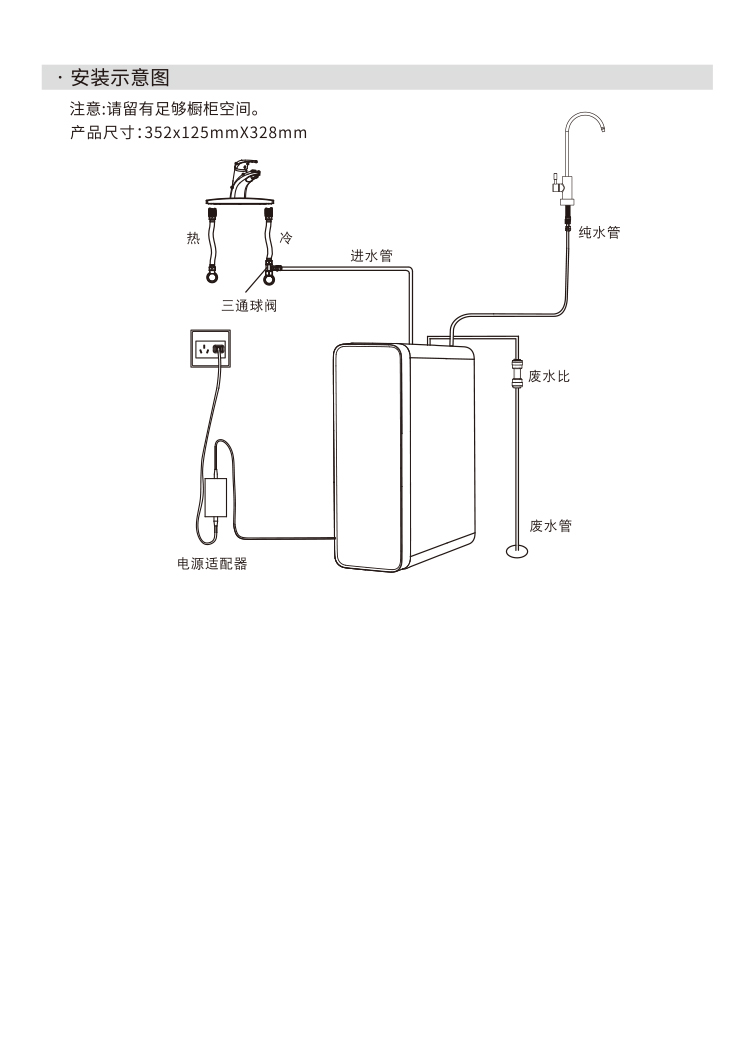 出水水质:纯水符合《生活饮用水水质处理器卫生安全与功能评价规范——反渗透处理装置》(2001)的要求。