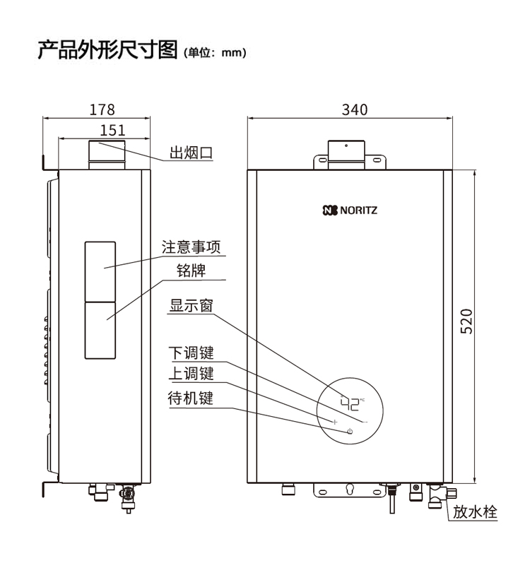 热水器尺寸(长mm×宽mm×高mm):520×340×178