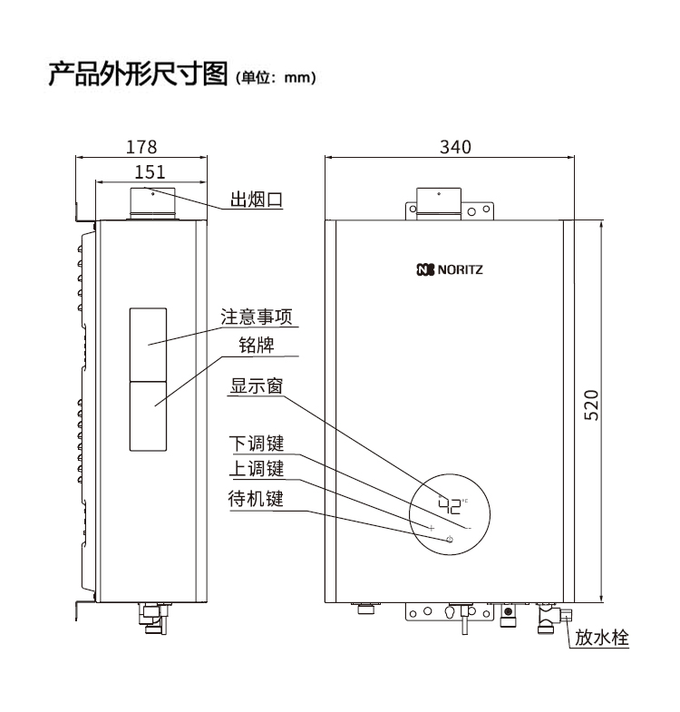 热水器尺寸(长mm×宽mm×高mm):520×340×178