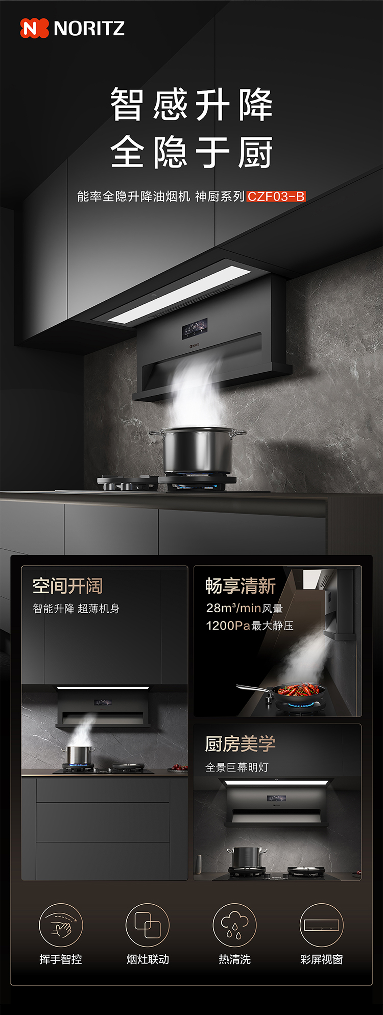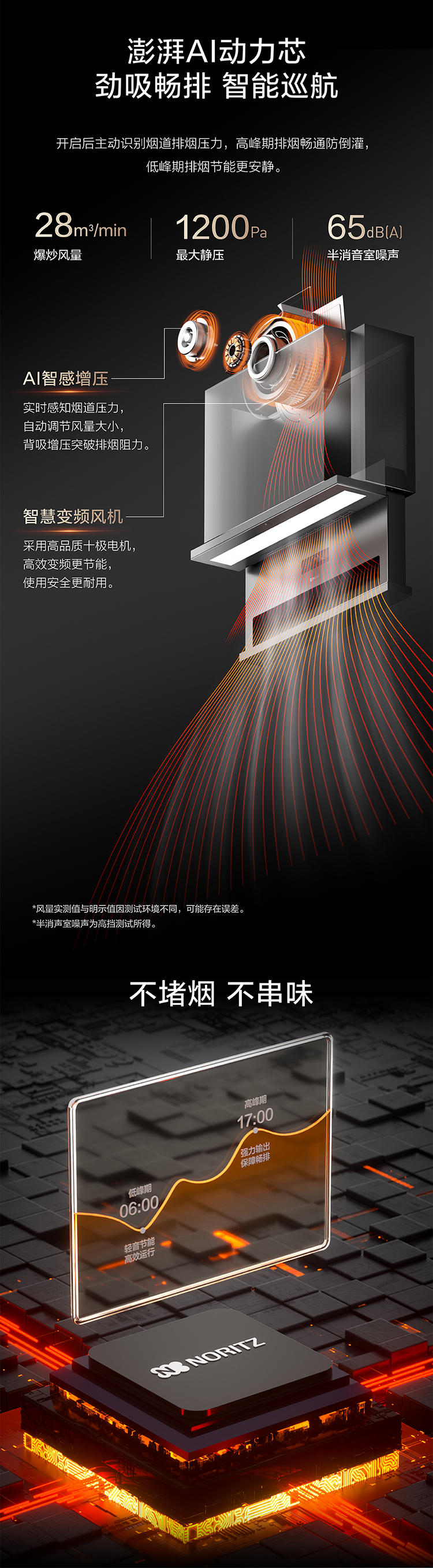 - 28m³/min爆炒风量 顶侧双吸不跑烟