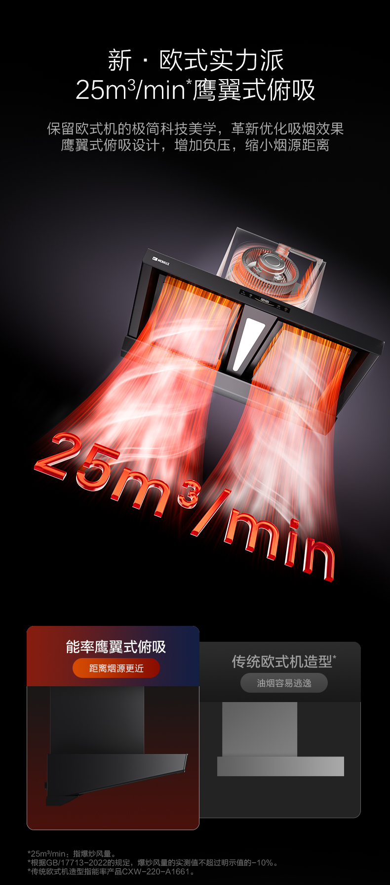 • 25m³/min爆炒风量 鹰翼式俯吸