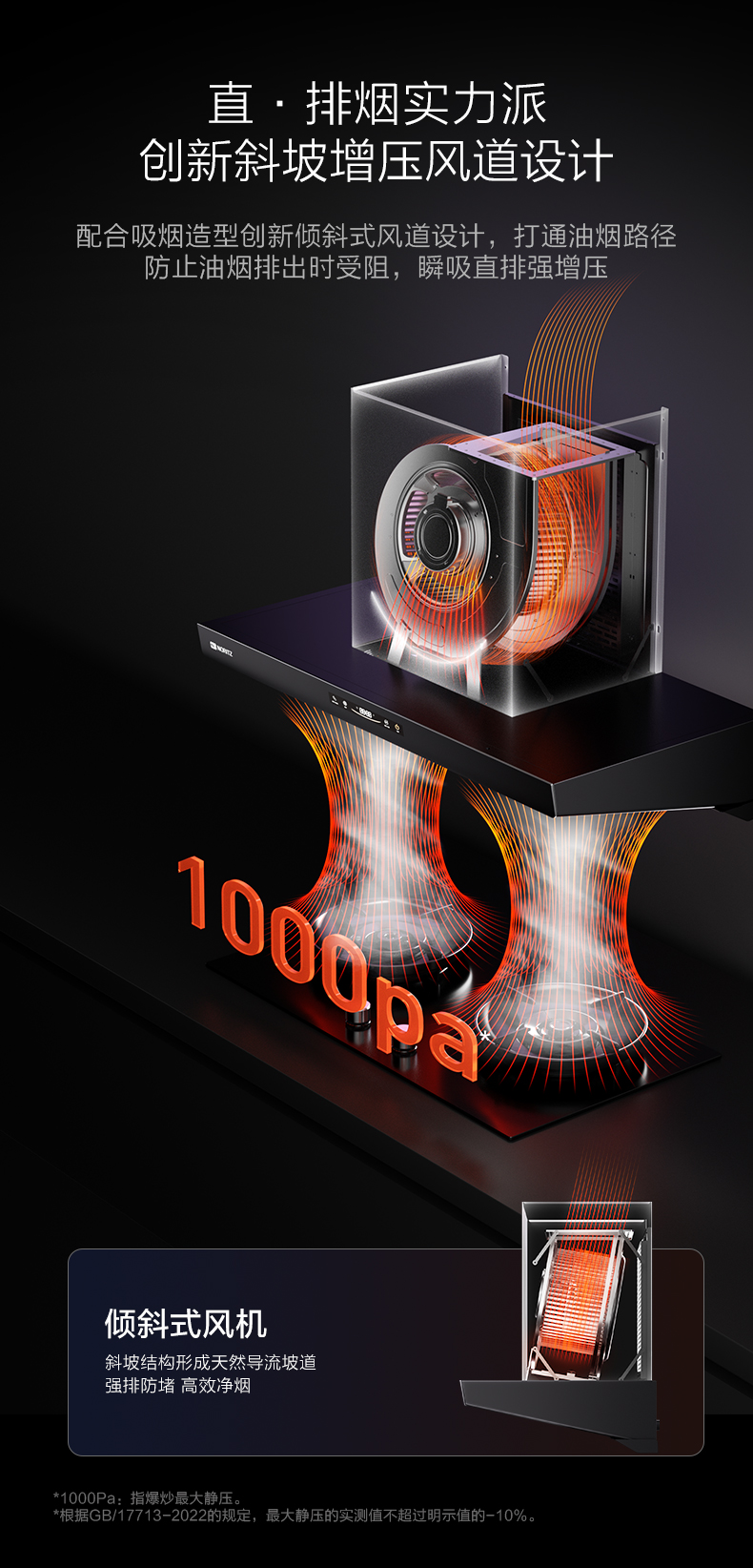 • 1000Pa最大静压 创新斜坡增压风道