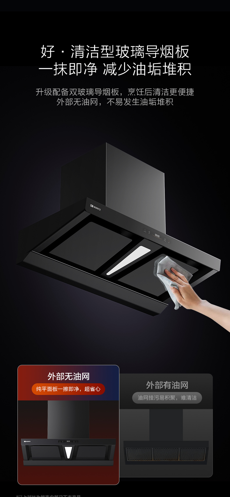 • 双玻璃导烟板 一抹即净好打理
